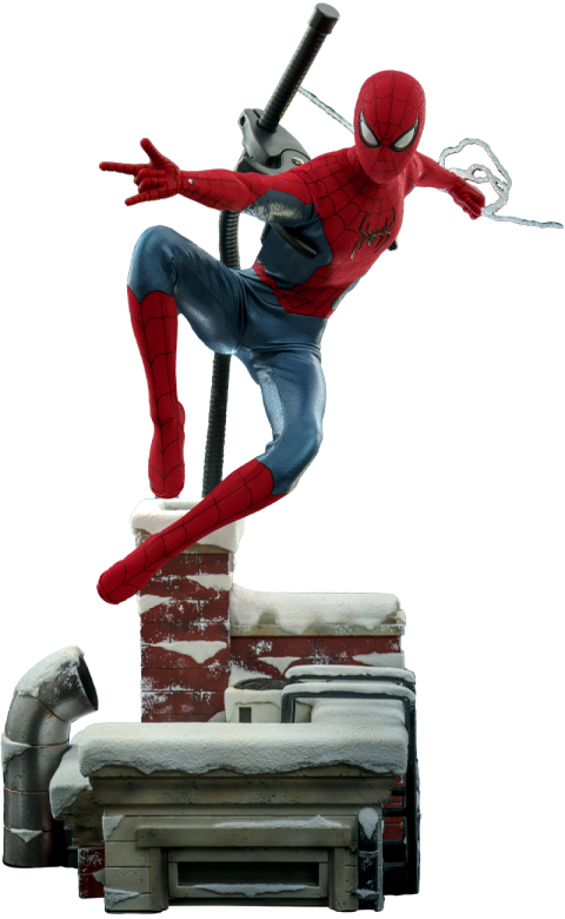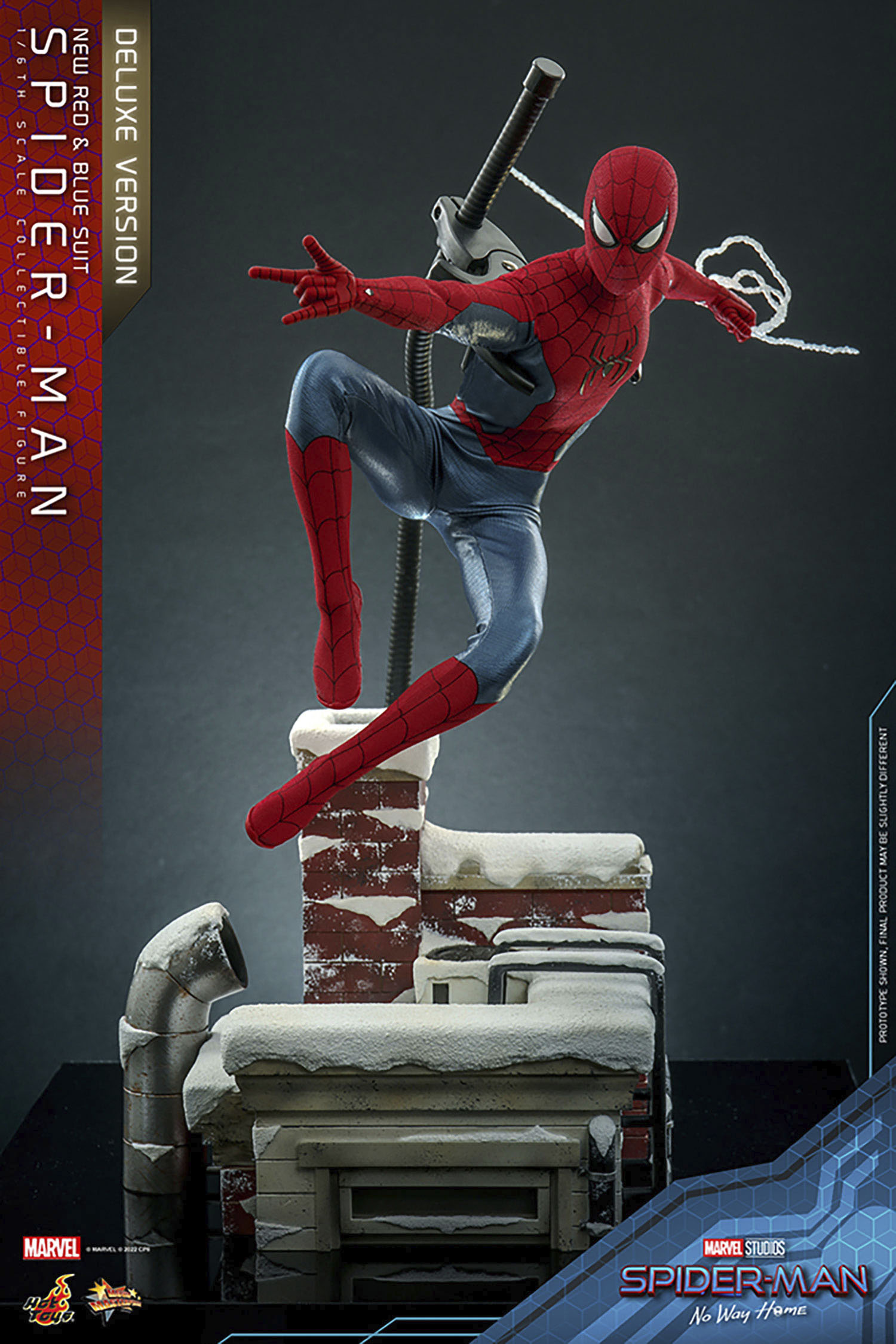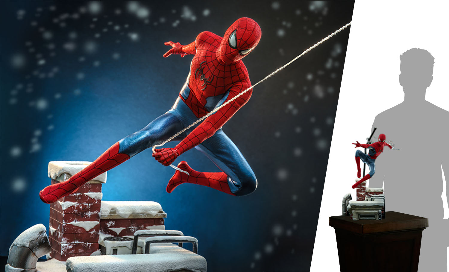 Sideshow and Hot Toys present the Spider-Man (New Red and Blue Suit) (Deluxe Version) Sixth Scale Figure with a rooftop diorama base only in Deluxe Version.